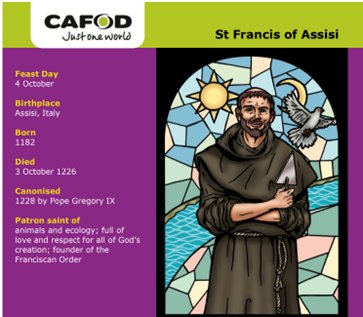 Our Patron Saint is Saint Francis of Assisi and we celebrate his feast day on the 4th October.