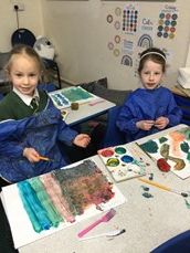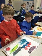 They were trialling how to make different strokes with the paint and using a variety of tools to make marks in the paint in the style of Charlie French.